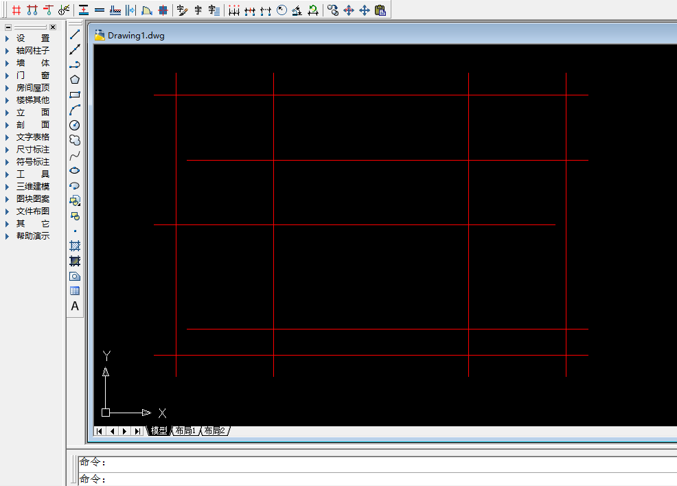1、打开天正建筑,并绘制一个轴网,如下图所示
