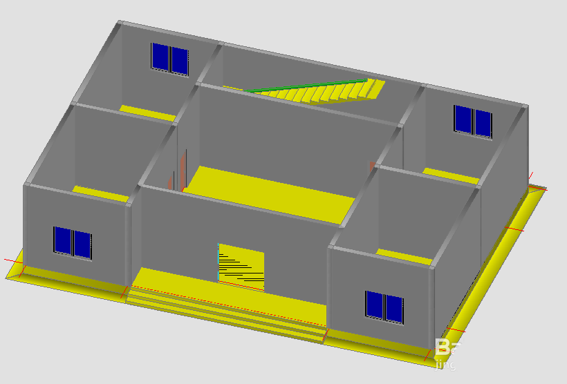 9、在命令行输入“3DO”,点击回车键,进入“受约束的动态观察模式”,然后就可以直观的看到自己绘制的首层平面图,如下图所示