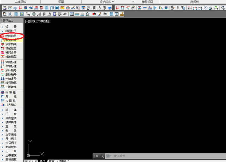 2、点击“轴网柱子”,然后点击二次目录“绘制轴网”,如下图所示