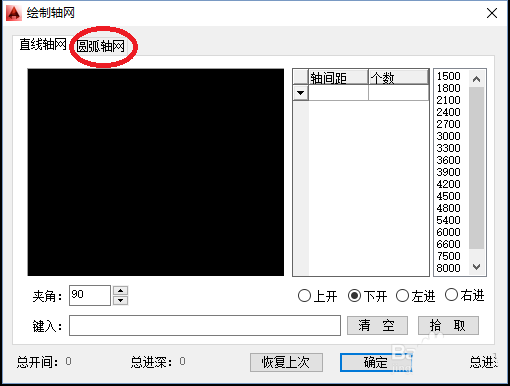 3、打开“轴网绘制”编辑页面,点击“圆弧轴网”,如下图所示