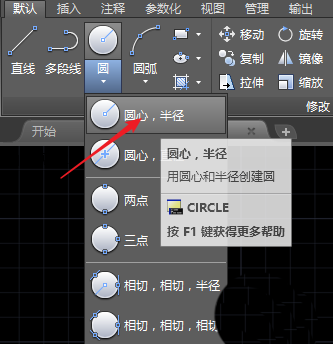 2、然后在线端点出画一个圆,半径为25,如图所示。