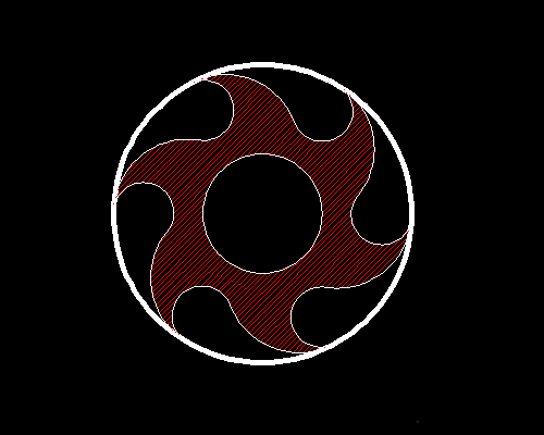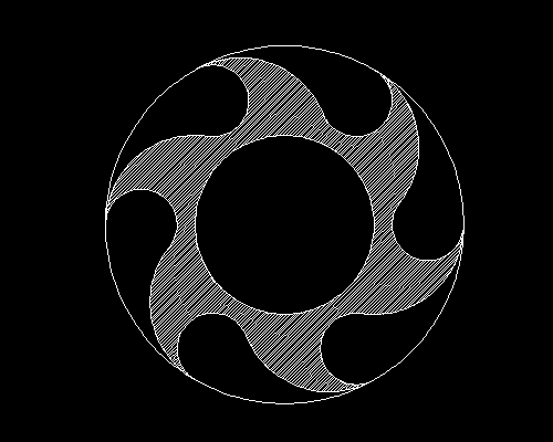4、修剪、阵列。修剪保留大小圆外侧部分,圆周阵列6个。添加中心圆,基本绘图就完成了。
