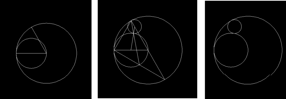 3、画风火轮小圆。以轮廓圆圆心为起点,做60°方向半径。画风火轮小圆,要求与轮廓圆及大圆同时相切。绘图过程辅助线如图所示。