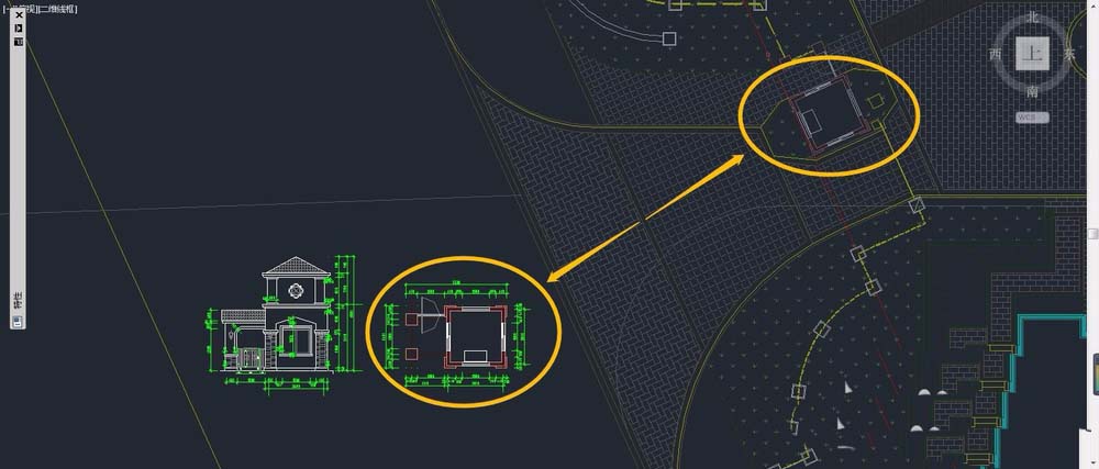 打开“门岗平面图”,在门岗平面图中插入修改过的“小区总平面图”。