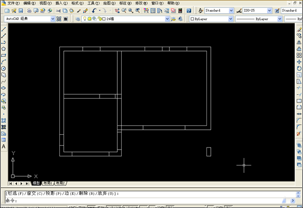9、用偏移和修剪命令画出所有的门窗洞口,再用修剪命令把门窗洞口修剪出来。