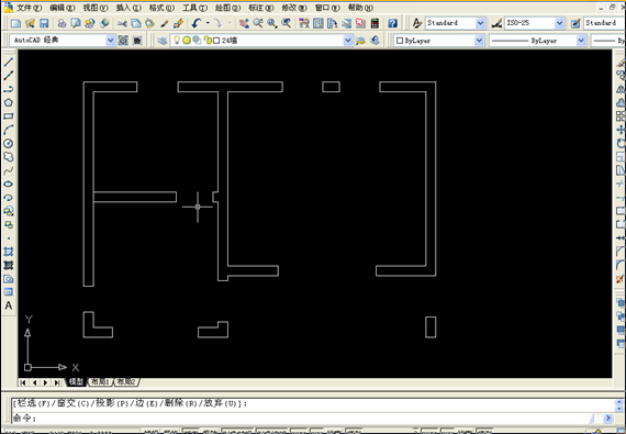 8、利用修剪、倒角命令完成大致的墙体修剪工作,留下必要的墙体线。