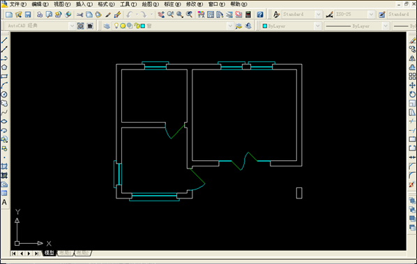 15、完成所有的窗户、门(复制命令、修剪命令、平行偏移命令、镜像命令等)