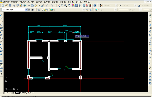 16、重新打开轴线图层,进行尺寸标注,线宽可以在图层里设置,也可以在出图打印时设置