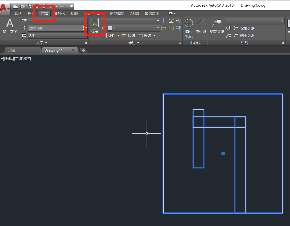 1、首先在功能栏中找到“注释”,注释的子功能栏中会有“标注”的功能按钮