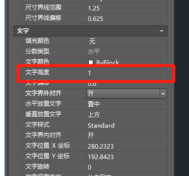 5、然后选择文字编辑部分,更改文字高度和偏移量,是修改文字的大小和距离标注线的远近,