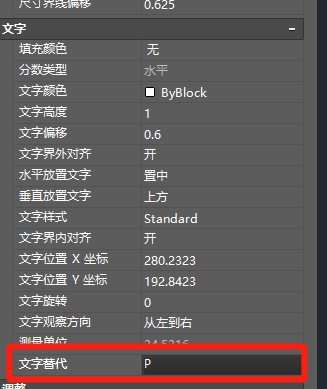 6、并在文字替代框里面填写对应的字母代替数字显示,或者使用公式代替,比如说P=1.0mm
