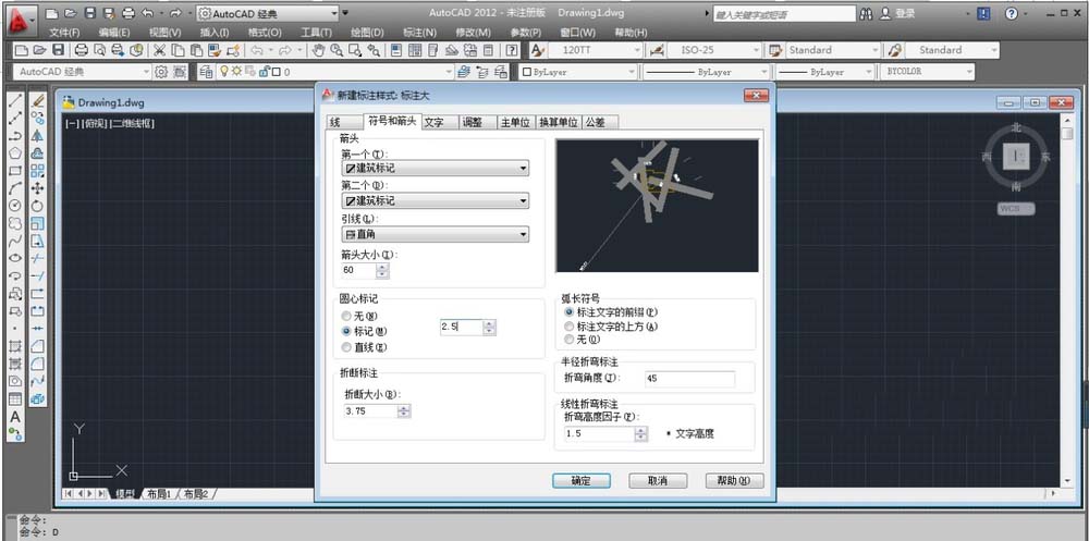 6、接着设置符号和箭头,建议大家设置的方案如下面图纸所示,设置好之后点击确定即可。
