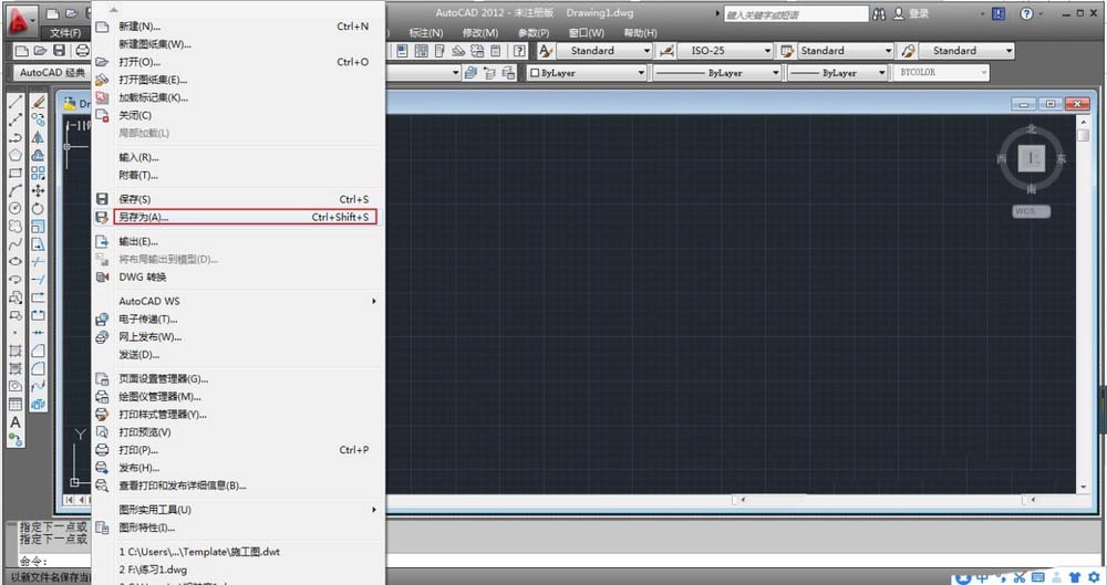 8、样板文件全部设置好之后,还需要进行另存为图形样板的形式,保存名设置为施工样板,下次打开的时候直接点击新建再点击施工样板即可。