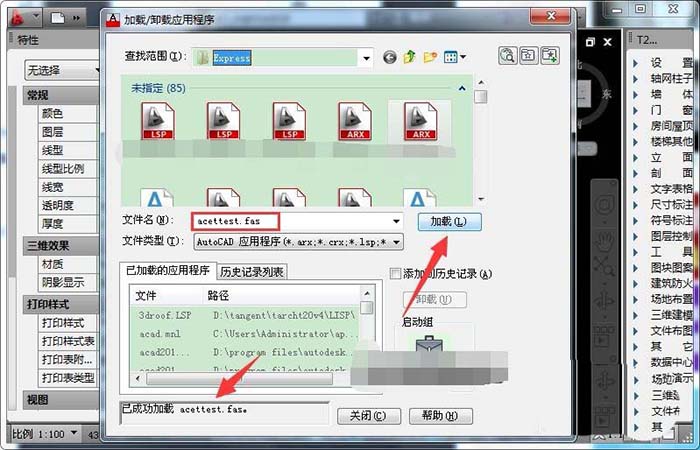 8、在安装路径中文件名输入acettest即可选择该项,点击加载查看加载成功即可。