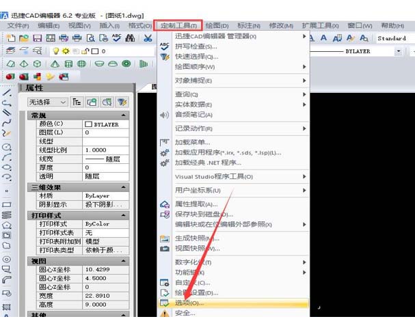 2、接下来在将编辑器上方菜单栏中的选项切换到“定制工具”选项卡中,之后在定制工具选项卡中在点击“选项”按钮即可。
