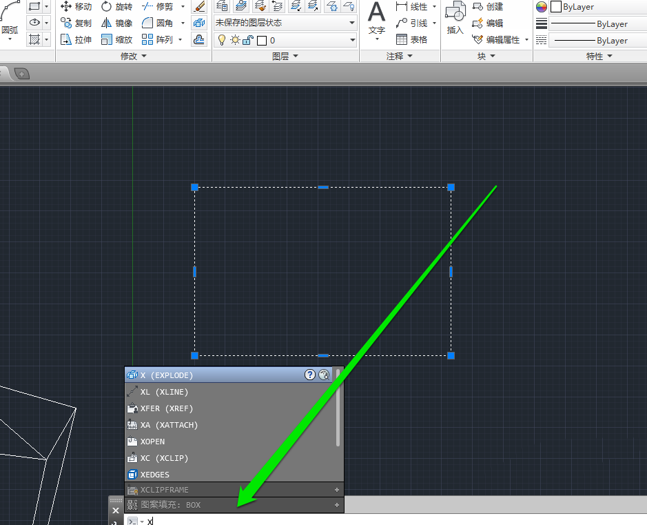 4、接下来,我们点击命令窗口,进行输入X命令。