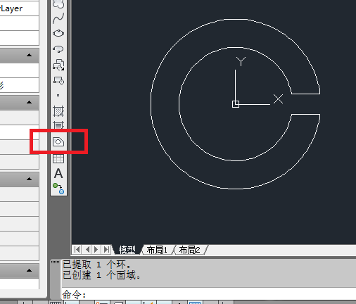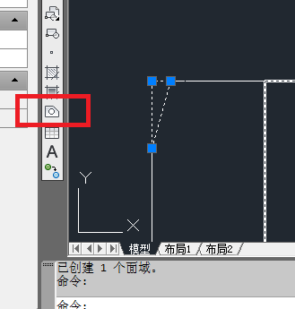7、如下图所示,创建一个面域。点击工具栏中的“面域”图标,选中所有的零散线段,回车。