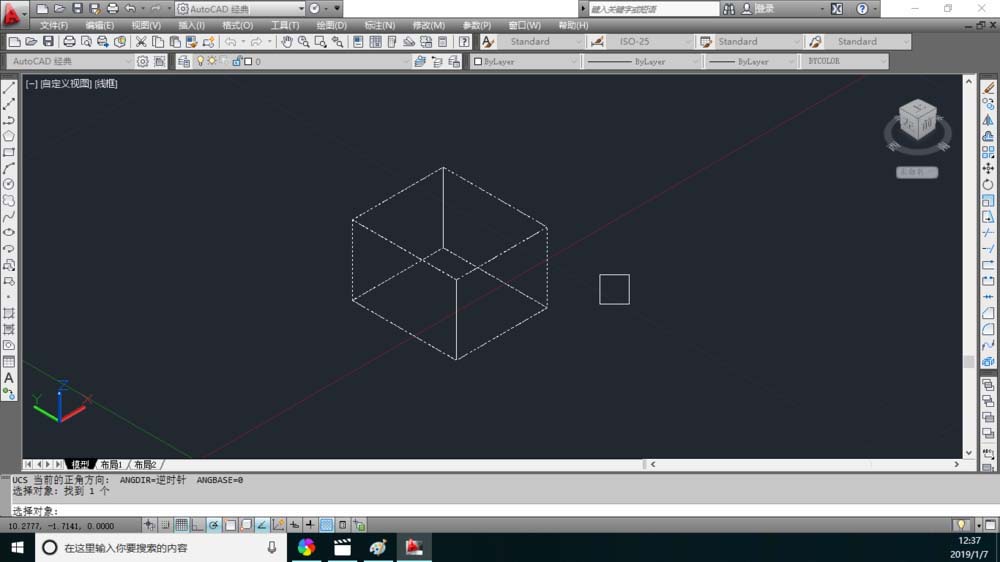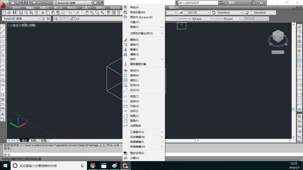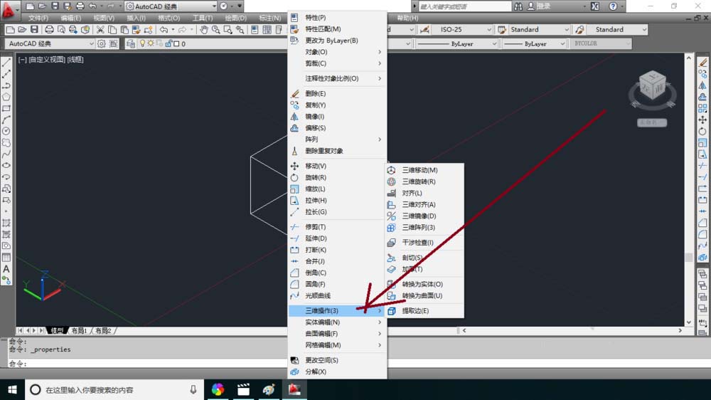 1、在绘图窗口中比如有正方体的图形。