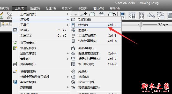 2. 很简单,我们选择菜单栏的工具--选项板--特性,上面也有显示快捷键是CTRL+1