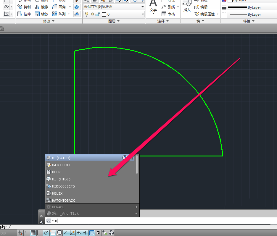 3、在命令窗口中,输入填充命令H。