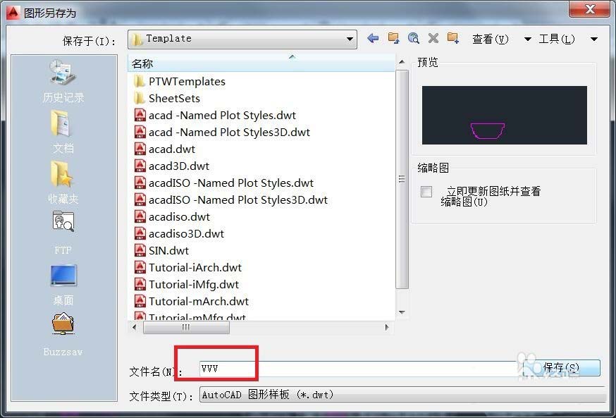 4、选择另存的格式为---图形样板 DWT---格式