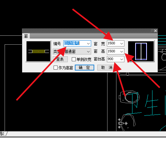 2、然后我们点击修改我们的窗户尺寸,把窗户编号选为自动编号