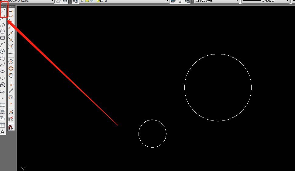 2、随便绘制两个圆,下面我要做一条直线与两个圆相切