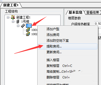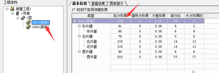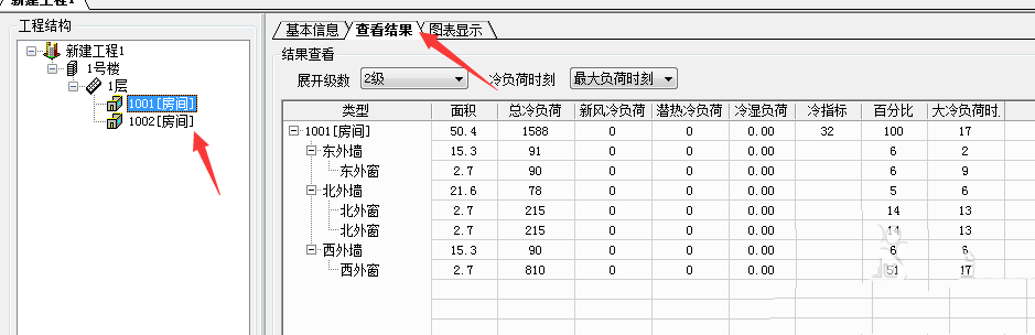 提取成功之后,即可查看到你的建筑物的房间自动归档到工程下方,然后点击房间号,即可查看到各个房间的冷热负荷计算的结果。