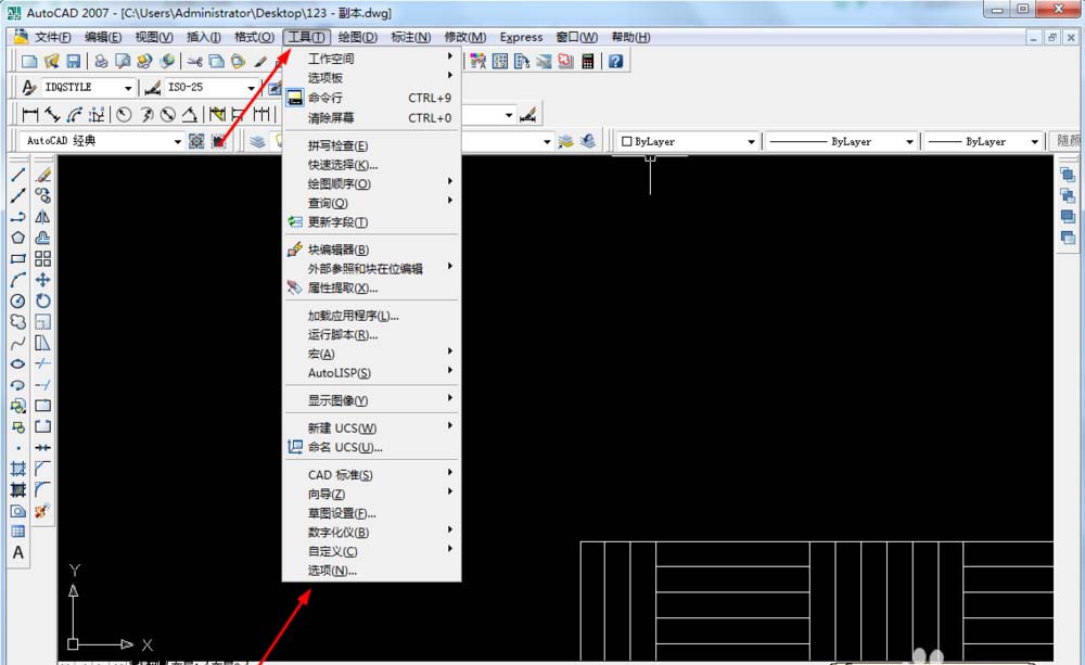 2、我们点击图中工具选项下的选项按钮,如图所示;