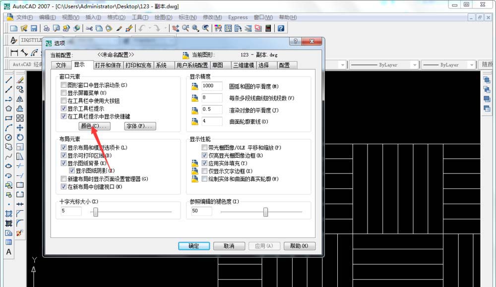 4、接下来在显示选项中的窗口元素选项下点击颜色选项,如图所示;