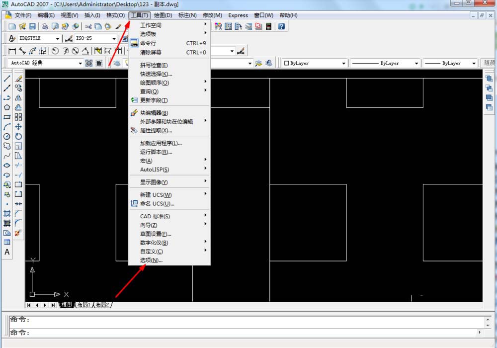 2、再点击图中工具选项下的选项按钮,如图所示;