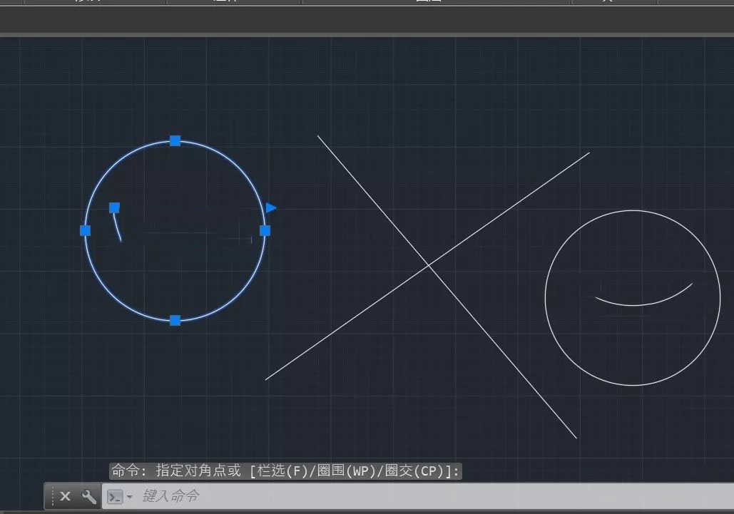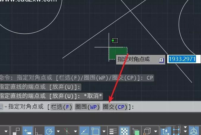 用法:绘图区域空白处单击鼠标左键进入选择状态,输入cp回车,通过直线连接多边形,与多边形相交的对象即可全部选中。