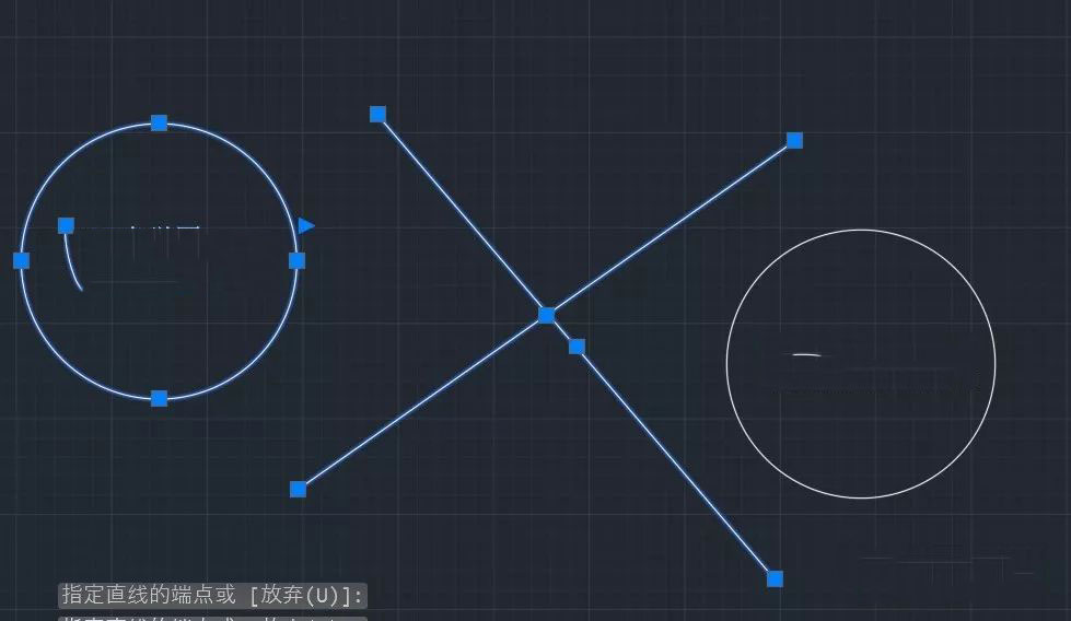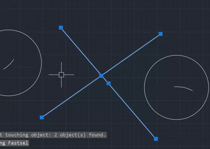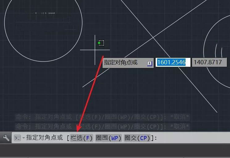 鼠标左键单击绘图区域空白处后进入选中状态,输入F空格进入栏选,直线经过的对象会被全部选中。