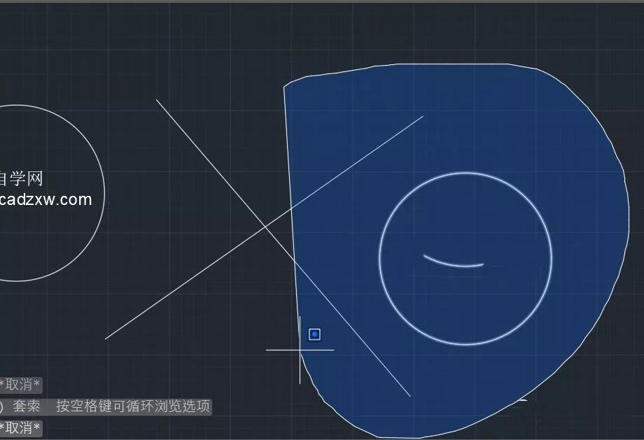 用法:绘图区域空白处单击鼠标左键进入选择状态,输入wp回车,通过直线连接多边形,在所连接多边形内部的即可选中。