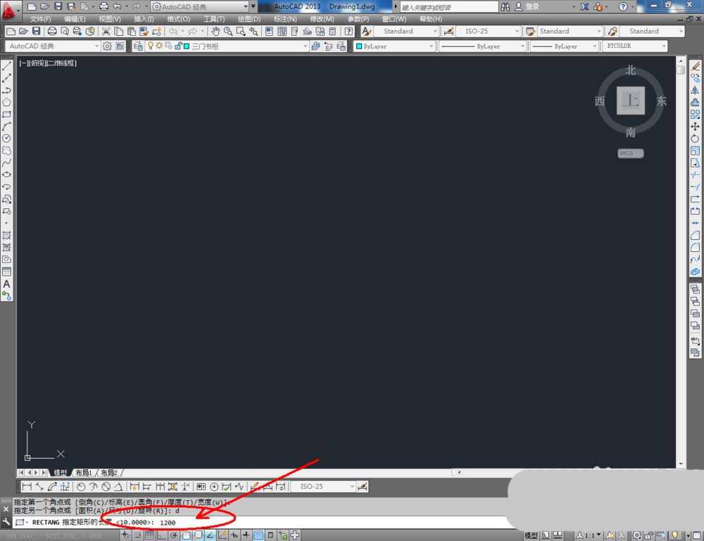 2、点击【矩形工具】,按图示在命令栏输入:d并按下空格键,输入长度值:1200并按下空格键,继续输入宽度数值:1950并按下空格键,完成矩形图案的绘制。选中图案,点击右边工具栏中的【分解工具】,将图案炸开(如图所示);