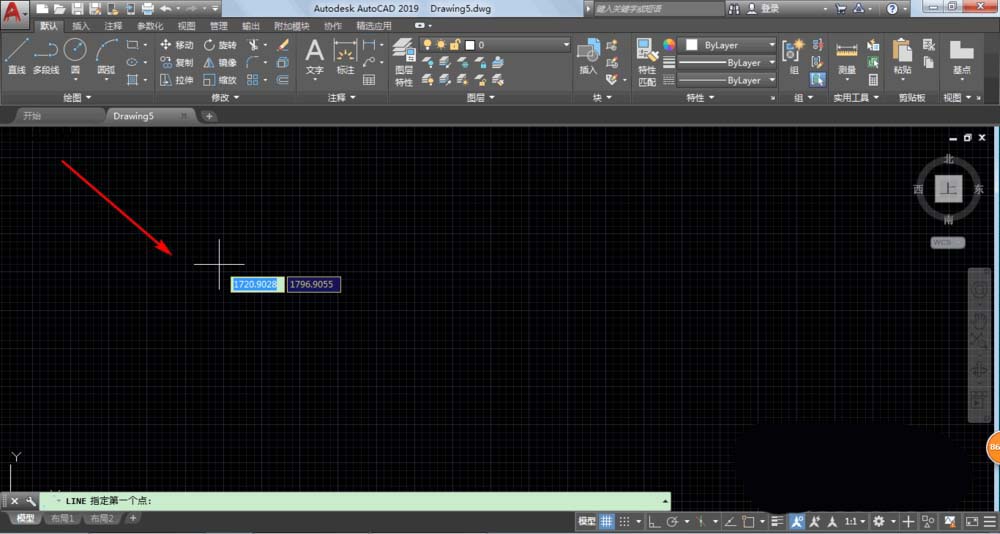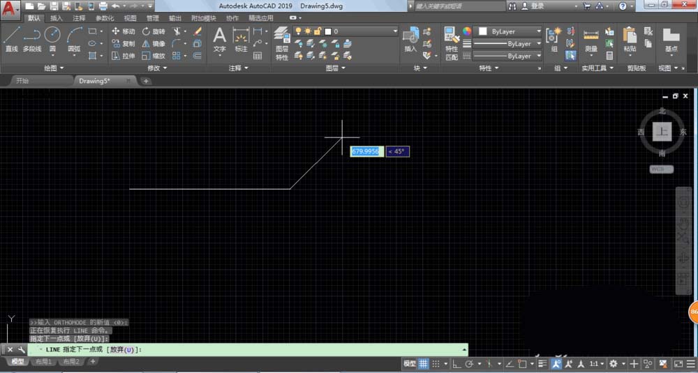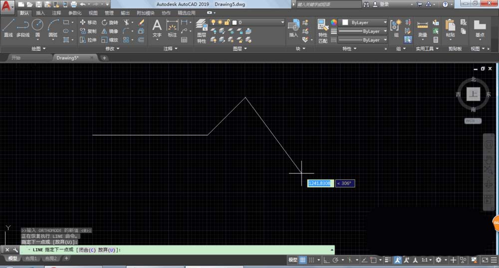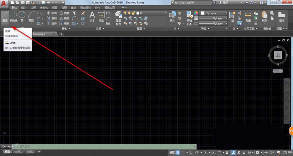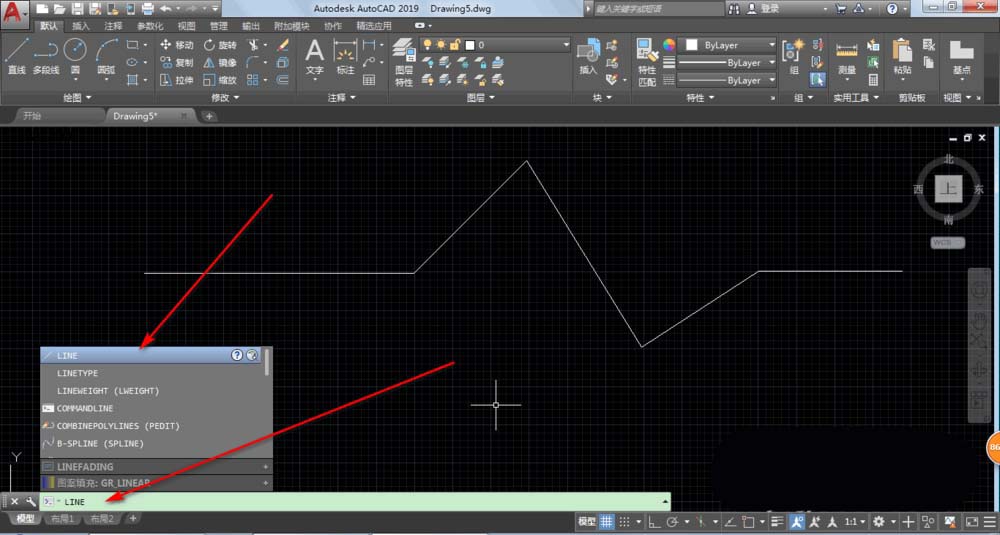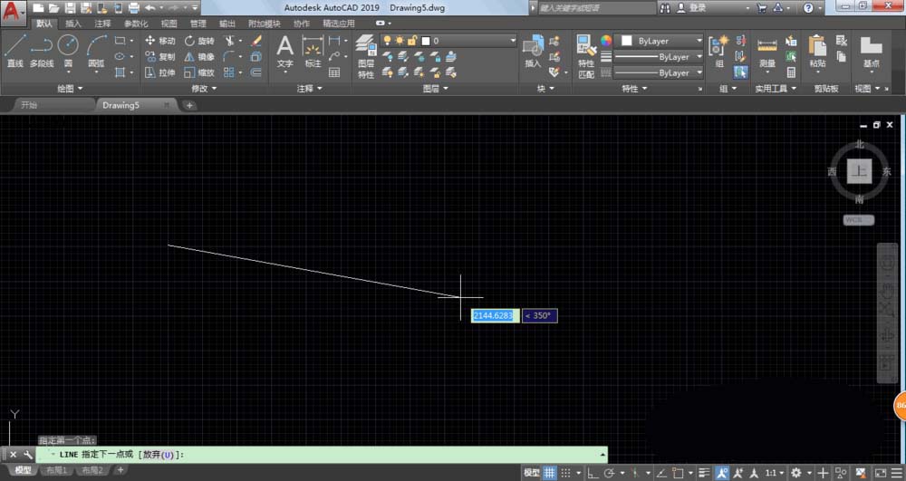 6、当然直线工具也可以通过输入LINE来进行绘制,方法也是一样的。