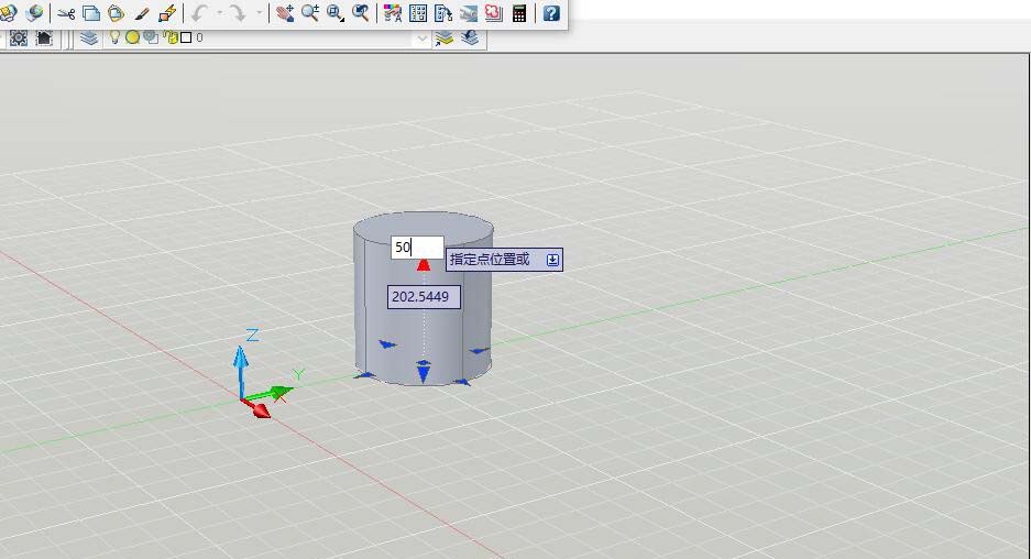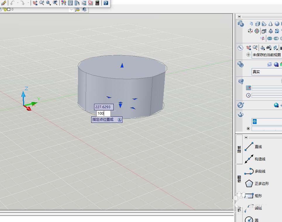 3、单击选择上表面蓝点,可修改圆柱体的高度,如图所示。