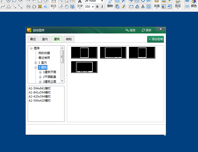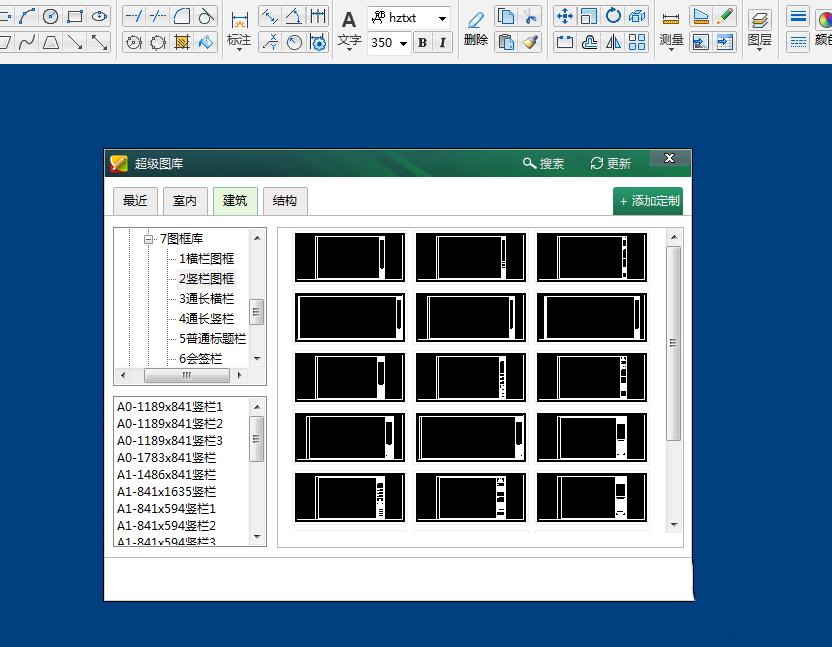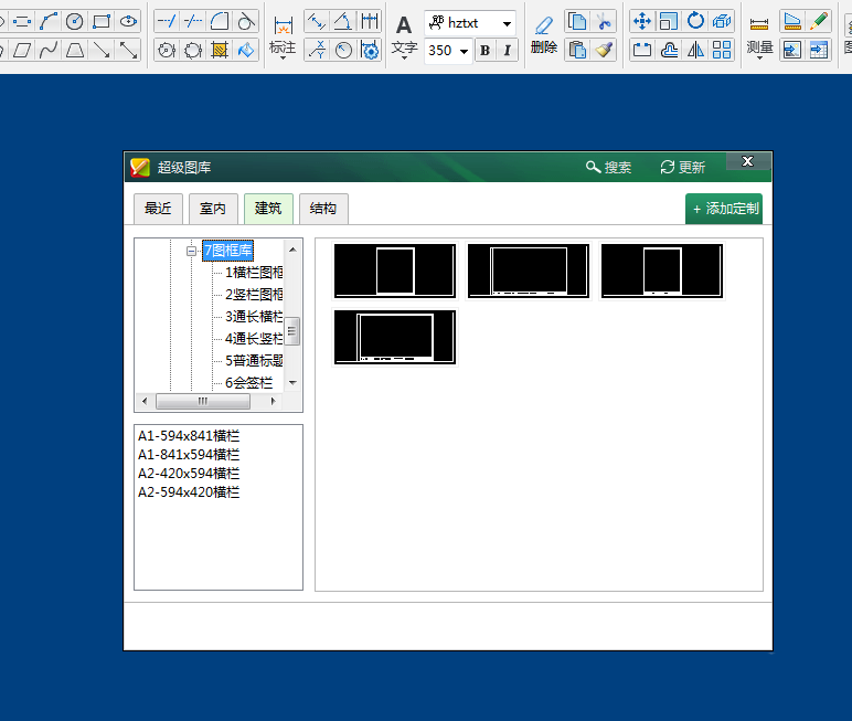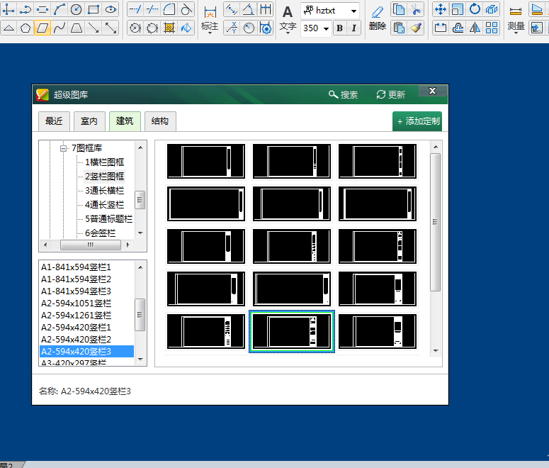 8、双击后,在CAD中点击图框,完成建筑图框。