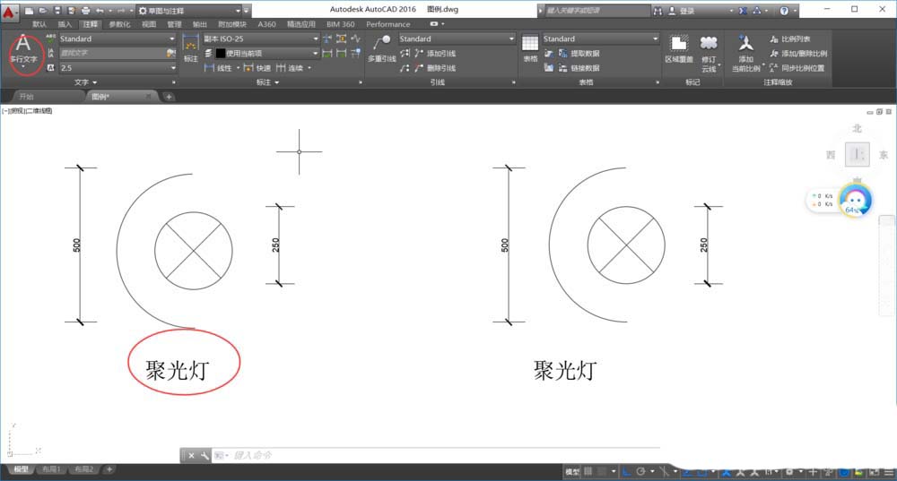 11、最后进行注释,选择多行文字输入聚光灯即可。
