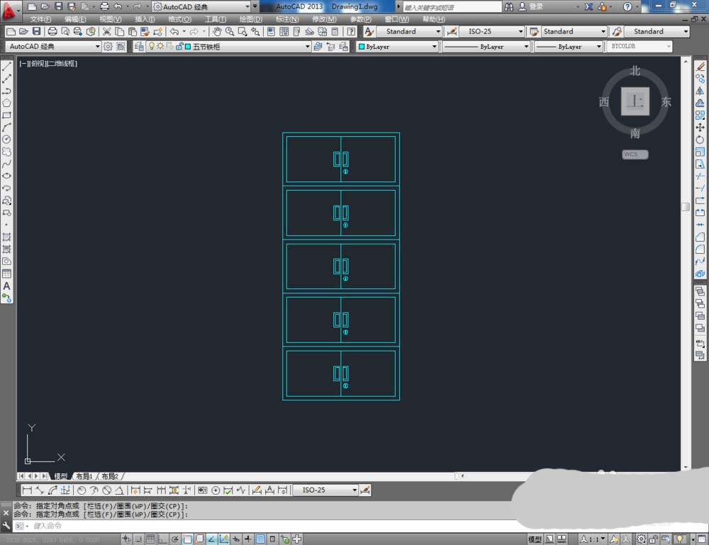 5、选中整个图案,在命令栏中输入:co后,通过移动复制,完成另外四个柜体副本的制作,这样我们的五节铁柜就全部制作完成了。