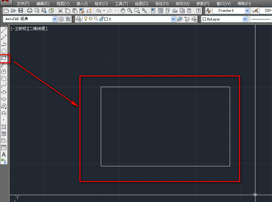 1、打开cad,使用矩形工具绘制一个矩形,如下图。
