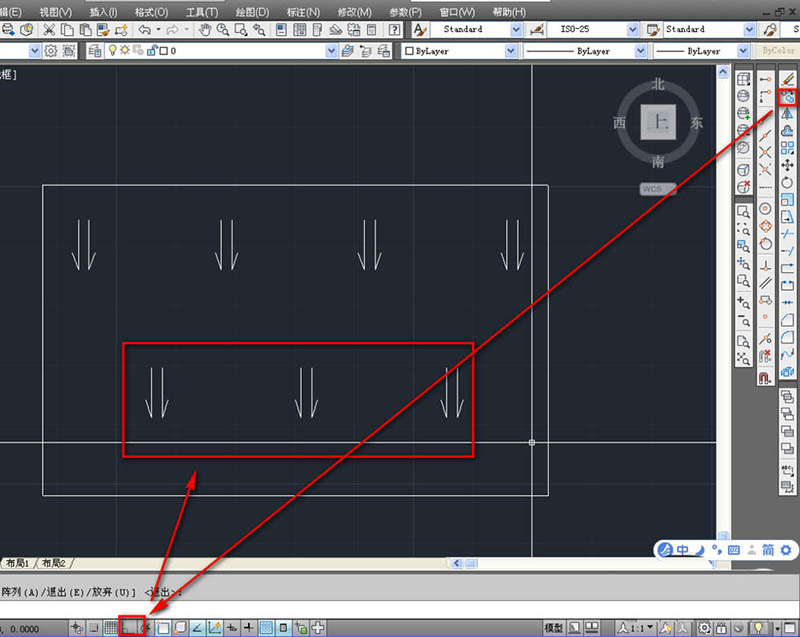 3、使用镜像工具,选择单箭头,如下图。