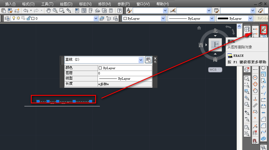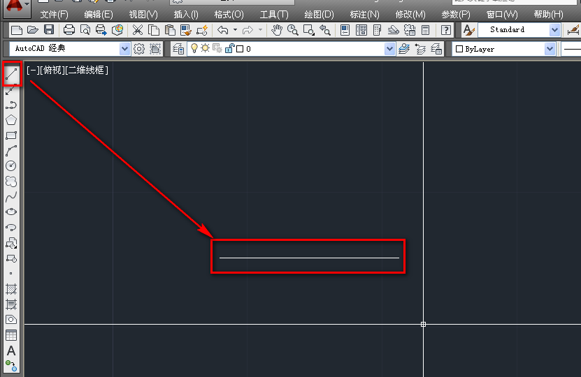 1、打开cad,使用绘制直线工具,在作图区绘制一条直线段,如下图。