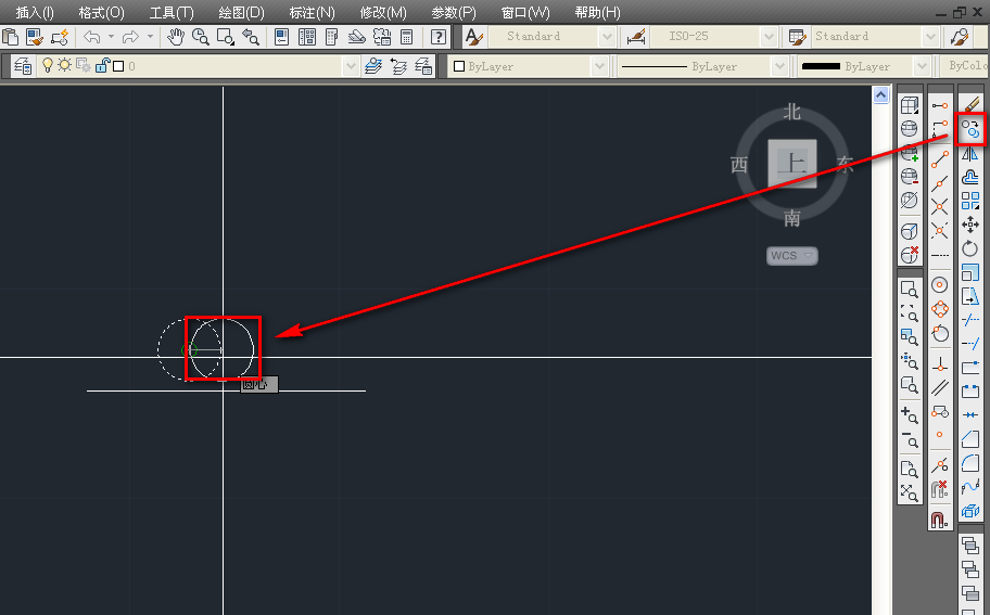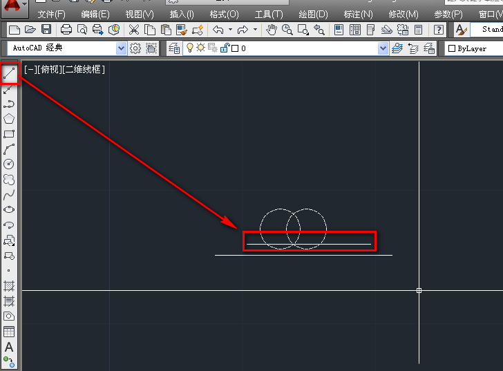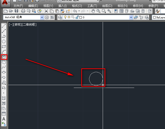 2、在直线的上方,使用圆工具绘制一个圆,如下图。