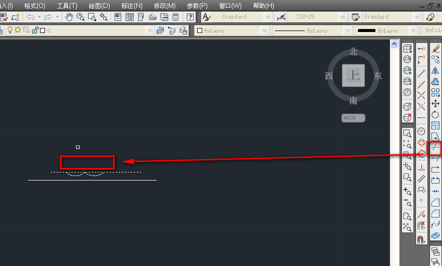 7、使用移动工具,将两条弧适当移动,即可绘制水下线路的图示,如下图。