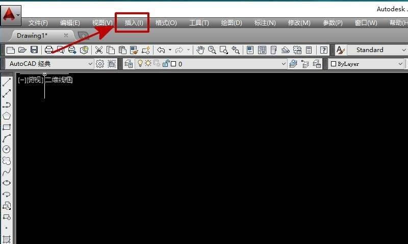 1、首先,我们打开CAD软件,点击“插入”,如图所示。