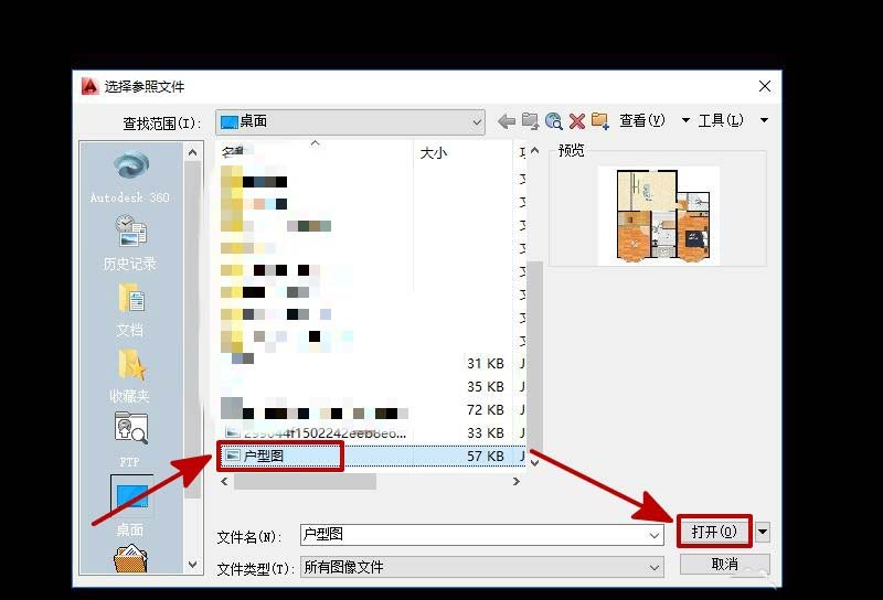3、通过路径找到“户型图”,然后点击“打开”,如图所示。