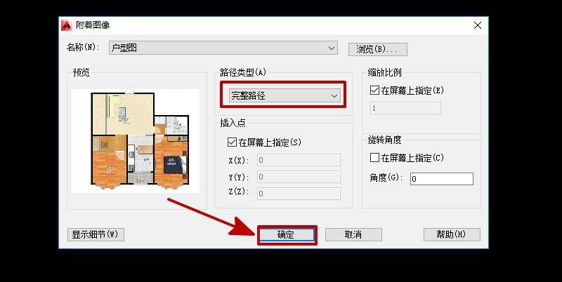 4、在对话框内选择“完整路径”,点击“确定”,如图所示。