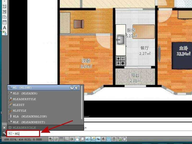 4、在命令栏里输入“ml”,然后在输入“s", 设置线宽比例为2,沿着墙的中线画出户型图外边框。