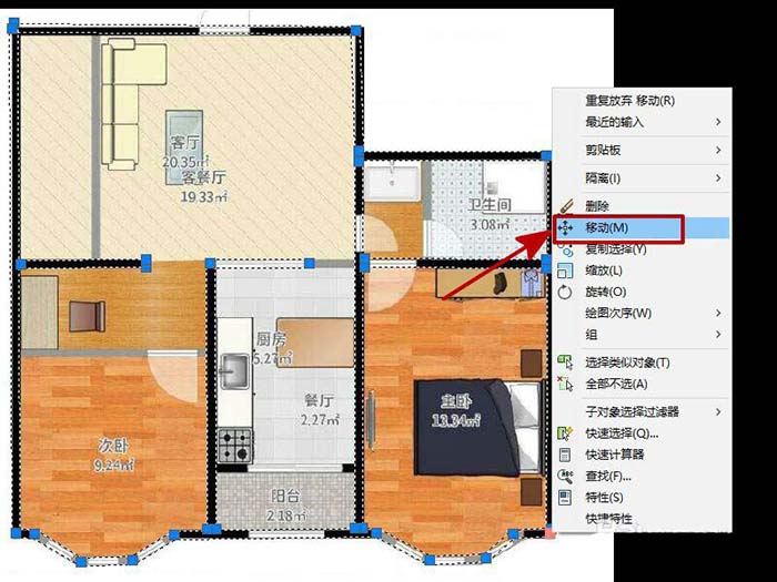7、画完后,选中线条,点击右键,然后选择“移动”,如图所示。
